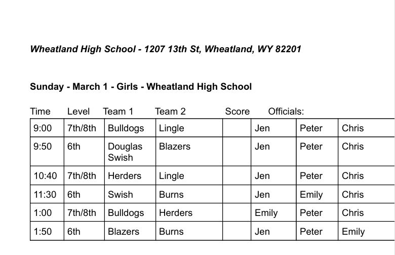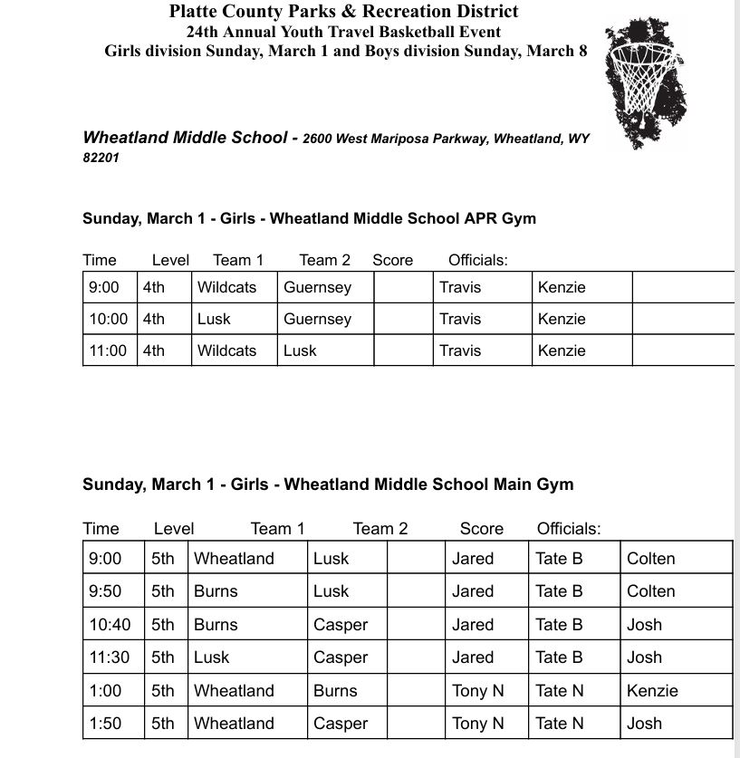 Platte County Parks and Recreation 93 Recreation Drive Wheatland, Wyoming 82201