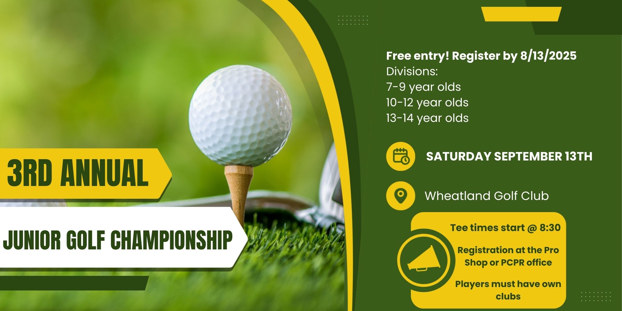 Parents can register their child at the Wheatland Pro Shop or Platte County